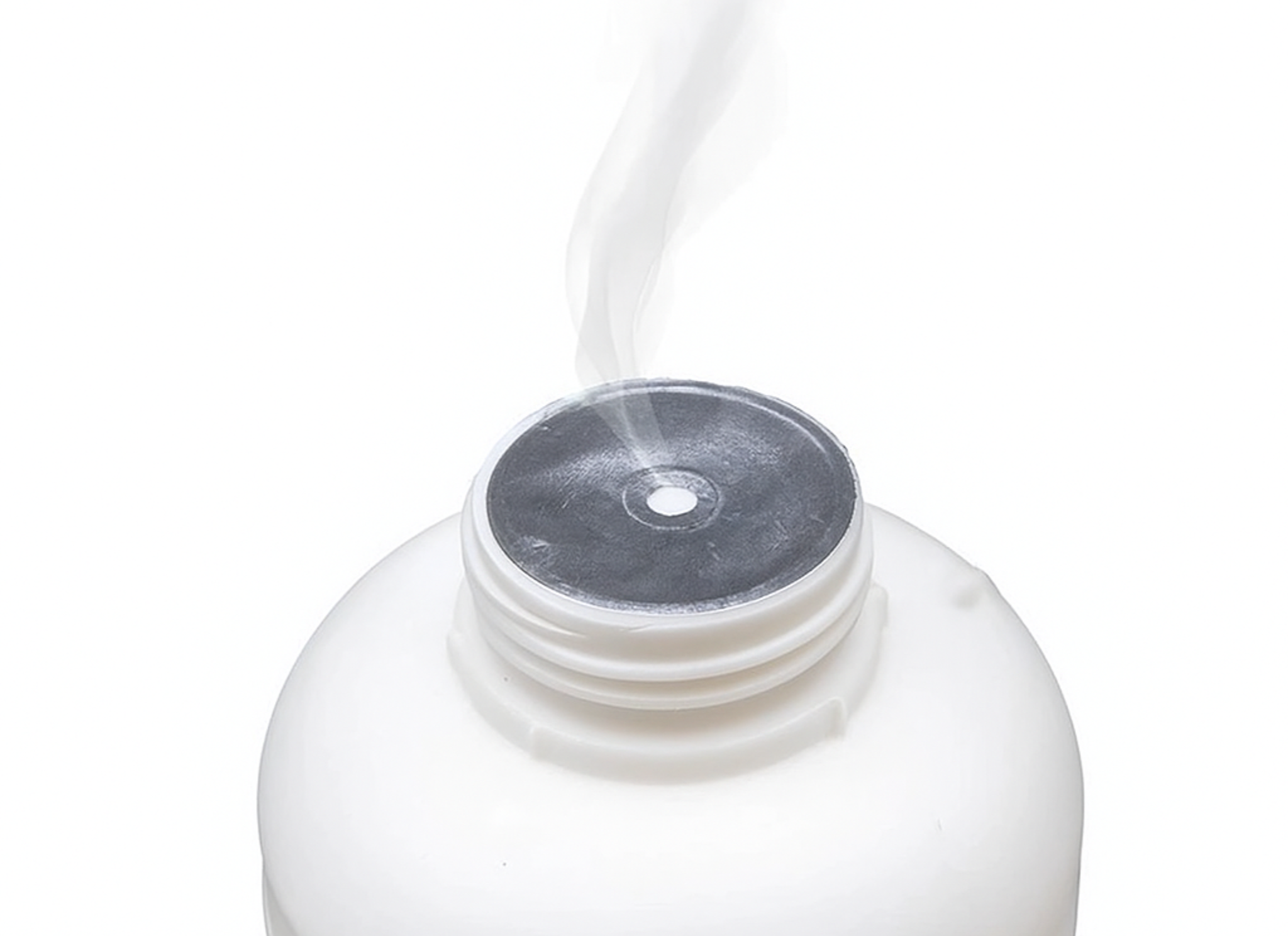 - Allows safe release of excess pressure from volatile or reactive chemicals.